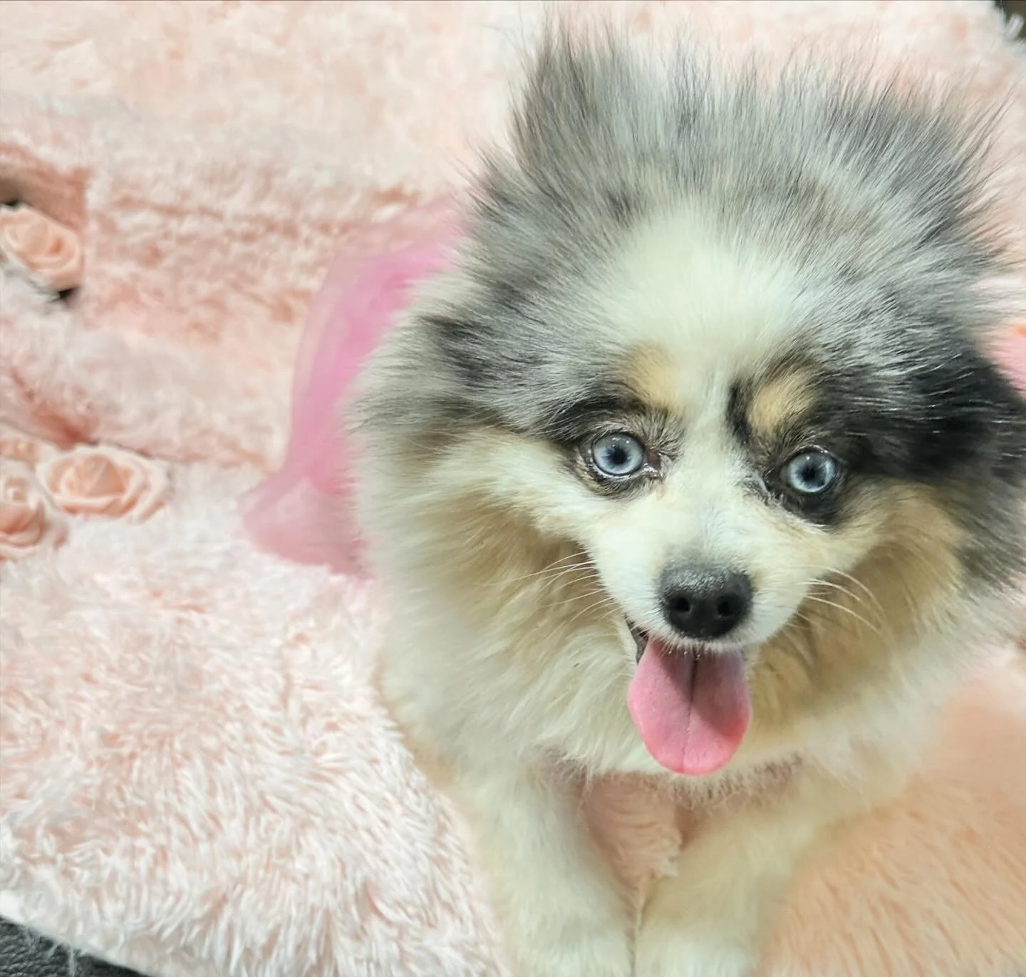 our girls are akc and embark dna tested, we only breed to approved studs that are great quality and embark dna tested to pair our girls with the best.We got our first pomeranian she was blue merle pomeranian lola. She is the one who made it all happen and started us off! and of course when she had a litter we kept her daughter chloe. Then with another litter of lolas.We kept Leah as well. So its definilty family poms that we have Mom and Daughters.